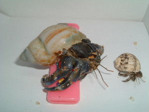 ちょいと大きめのオカヤドカリのイラストでした。かわいさを知って貰うにはやっぱ小〜中位のムラサキ@@でしょ。(あ、まるでえこひいき!あかんのに〜!いやいや、@@はどれも好きですよ!ホント!)