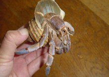 私と、というよりうちの家族とオカヤドカリとの出会いは5年前の沖縄からです。そして2000年の久米島で出会ったきれいなムラサキオカヤドカリが、その後の心境変化をもたらしたのでした。その時の彼or彼女の写真が下の画像です。
