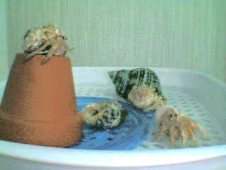 水に浸からない台を置いてやって飽きたらそこに・・・・という感じです。
