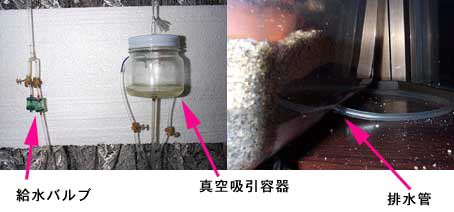 > 水を毎秒1滴ほど水飲み場より溢れさせて、飼育ケースを